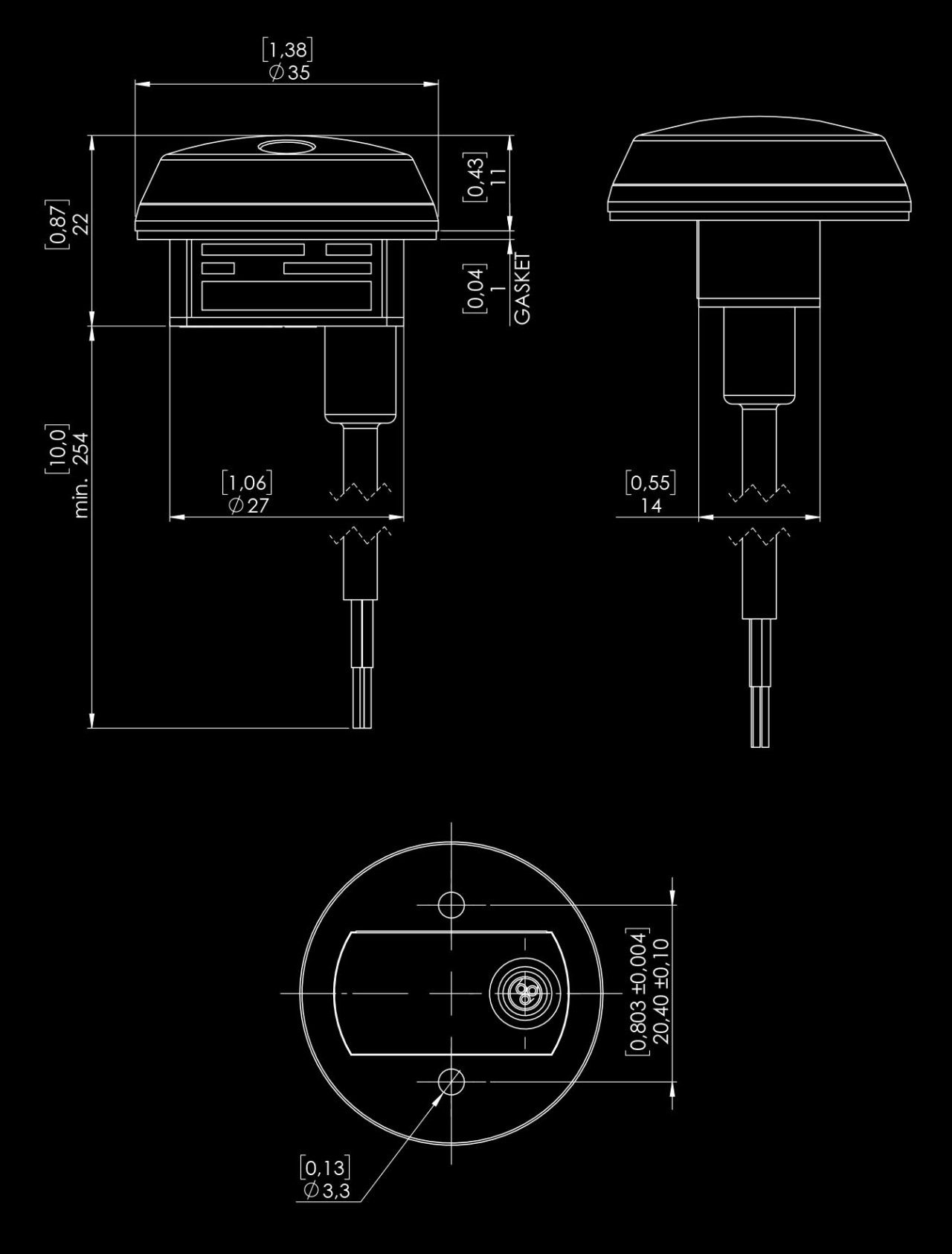 Dimensions – above surface (inches) 1.378“ x 0.433“